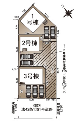 ■浄水器 ■人感センサー付玄関灯 ■建築確認番号:第R07SHC126099号 ※①・②号棟共有通路115㎡(持分1/2ずつ)